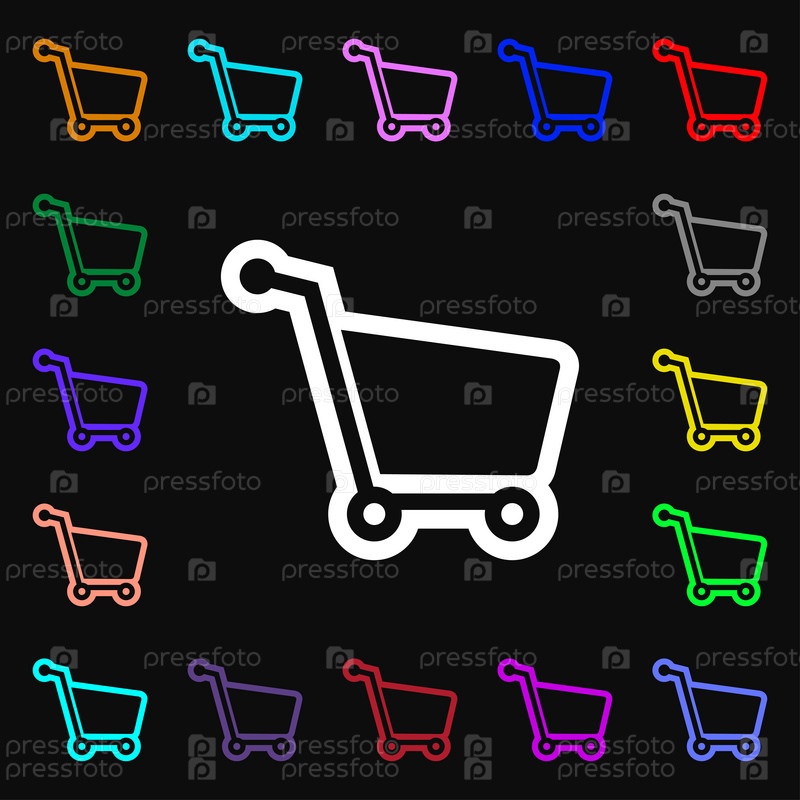 Торговый знак значок Корзина. Много красочных символов для вашего дизайна. Вектор