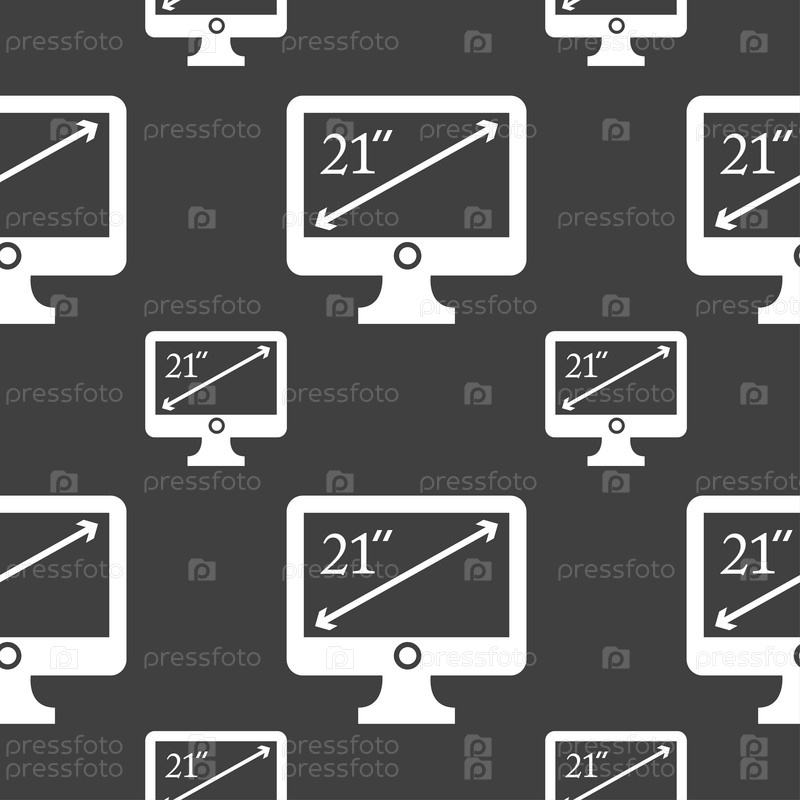 Диагональ 21 дюймов монитор значок знак. Бесшовный узор на сером фоне. Вектор