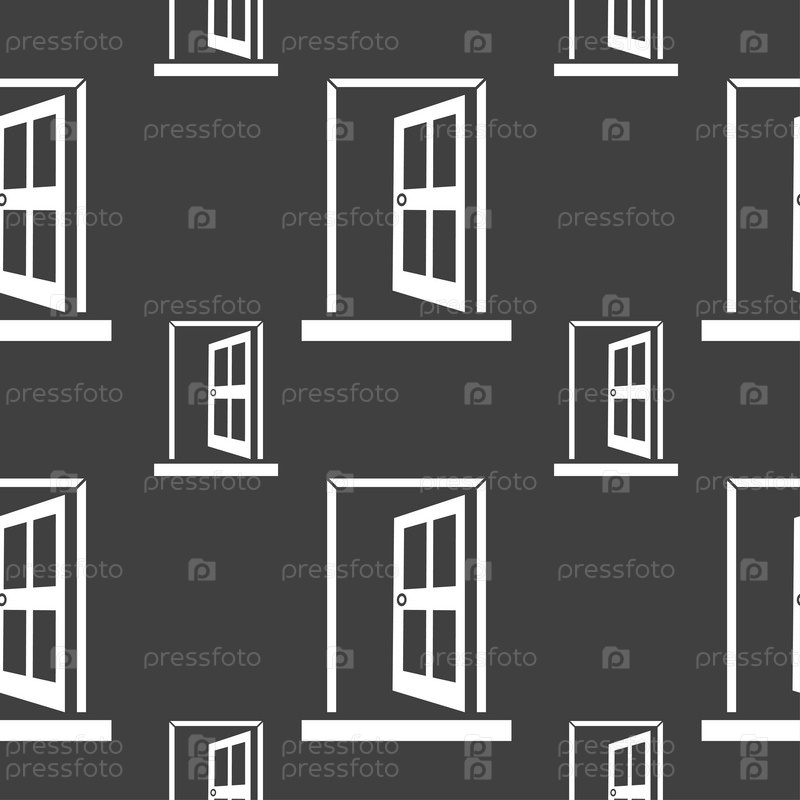 Дверь, ввод или выход значок символа. Бесшовный рисунок на сером фоне. вектор