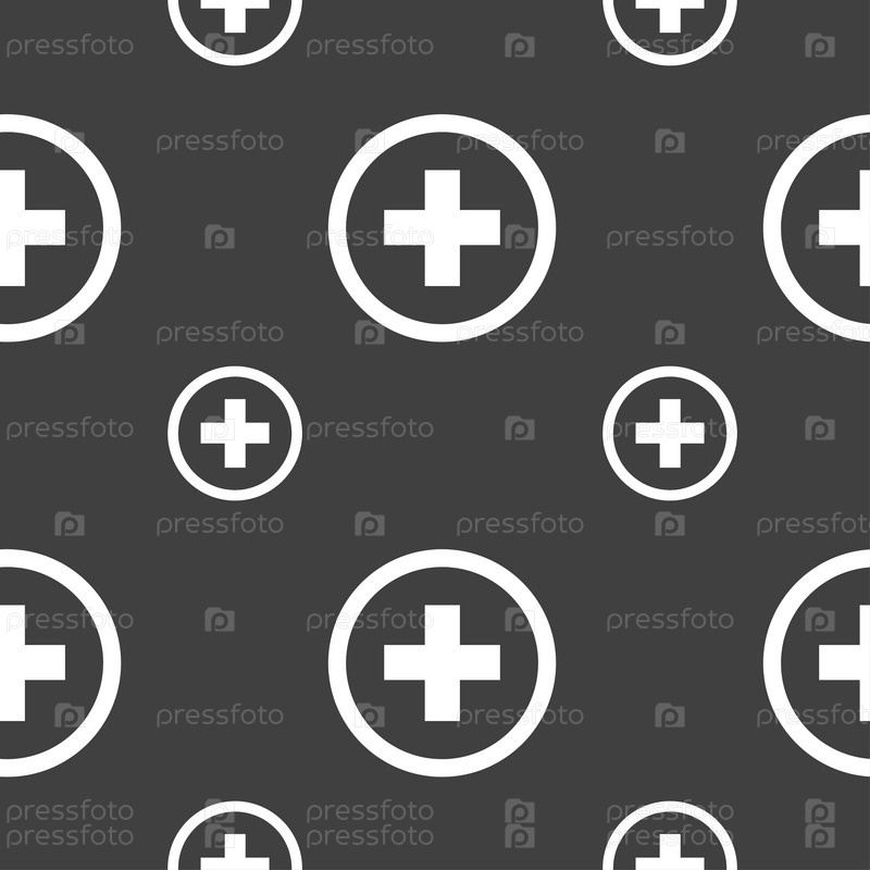 Кроме того, значок знак положительный, зум. Бесшовный узор на сером фоне. Вектор