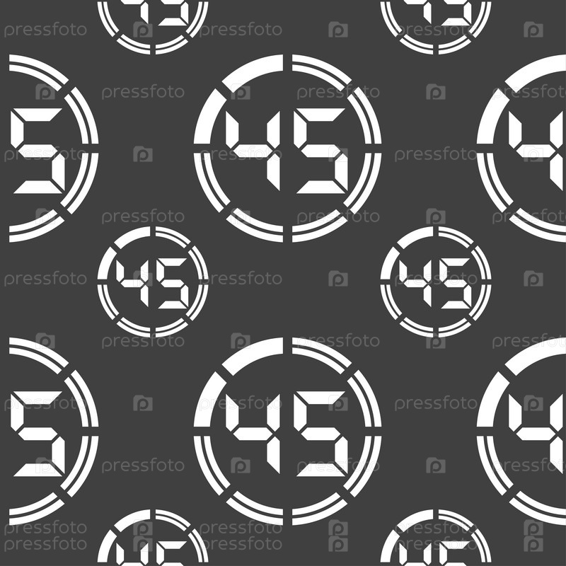 45 второй знак значок секундомера. Бесшовный узор на сером фоне. Вектор