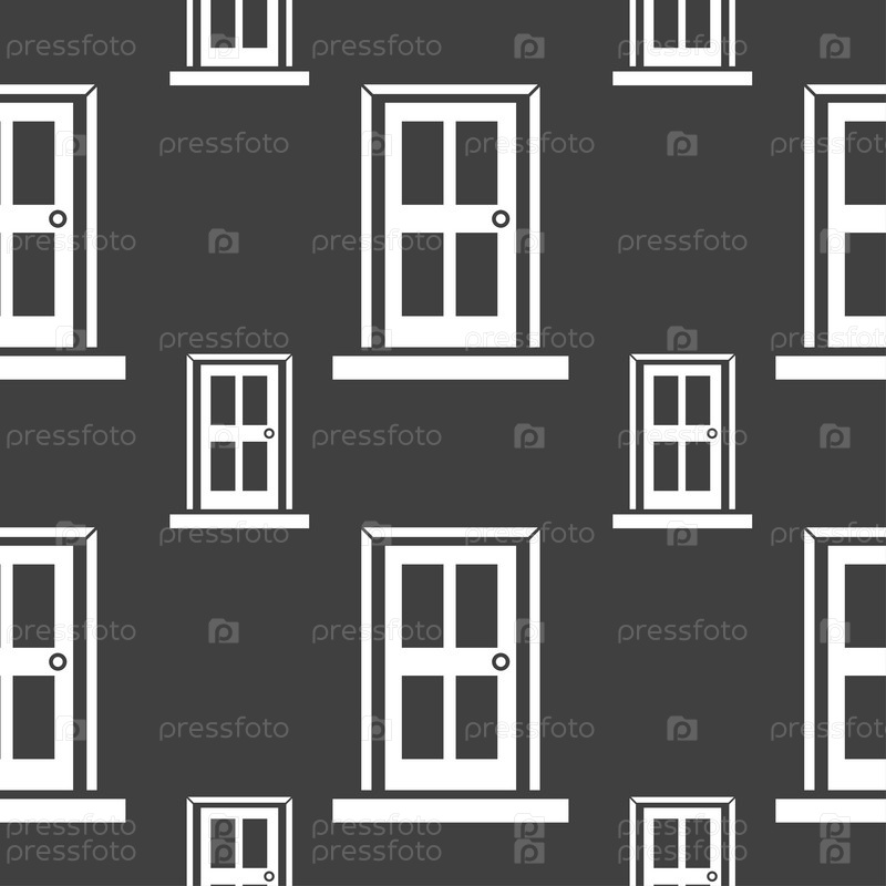 Дверь значок знак. Бесшовный узор на сером фоне. Вектор