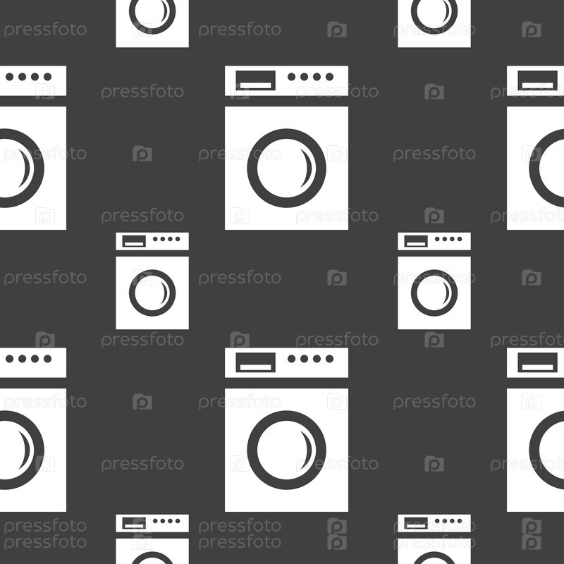 Стиральная машина значок знак. Бесшовный узор на сером фоне. Вектор