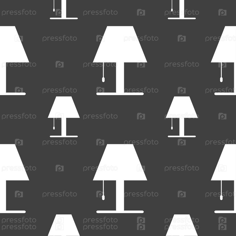 Лампа значок знак. Бесшовный узор на сером фоне. Вектор