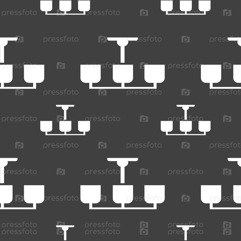 Люстра лампа свет значок знак. Бесшовный узор на сером фоне. Вектор