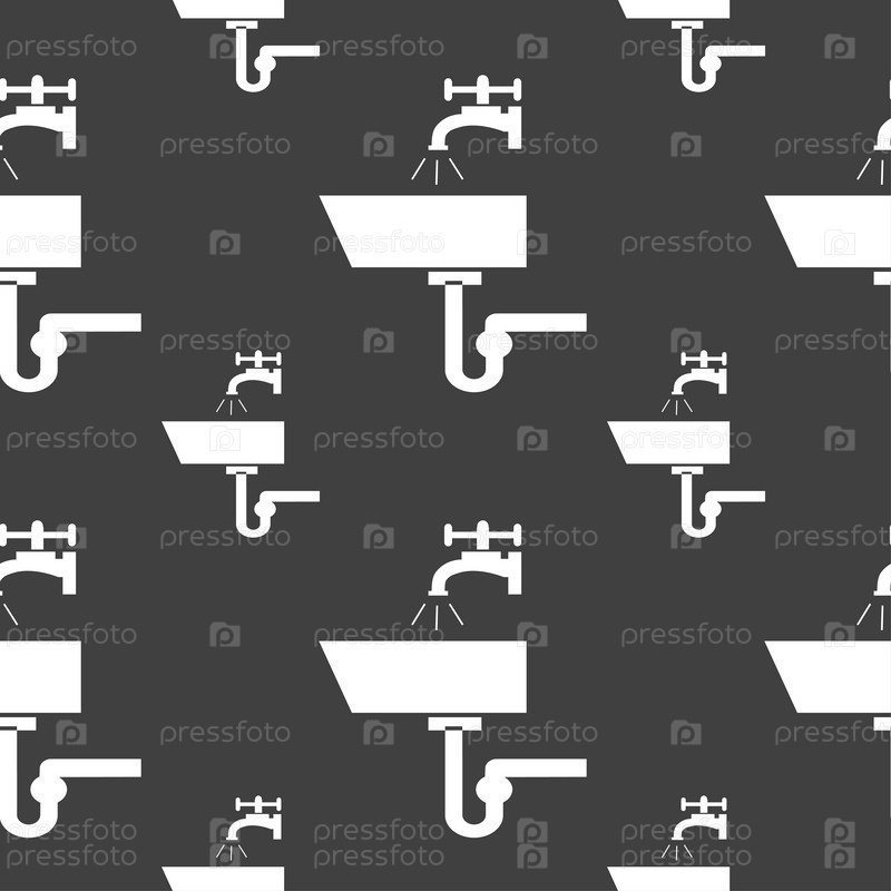 Умывальник значок знак. Бесшовный узор на сером фоне. Вектор