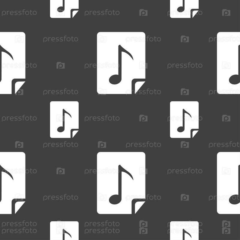 Аудио, MP3 файл на значке Знак. Бесшовный шаблон на сером фоне. Вектор