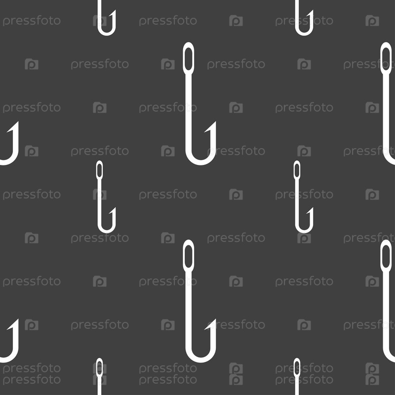 Рыбалка Хук значок знак. Бесшовный узор на сером фоне. Вектор