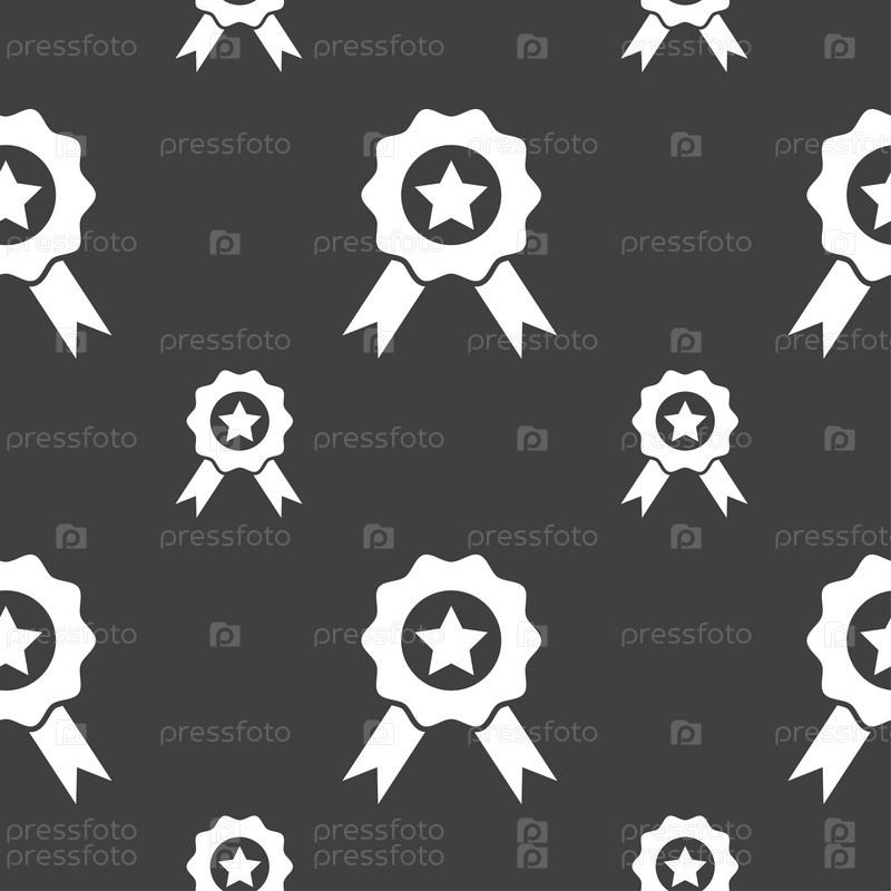 Премия, Медаль Почета значок знак. Бесшовный узор на сером фоне. Вектор