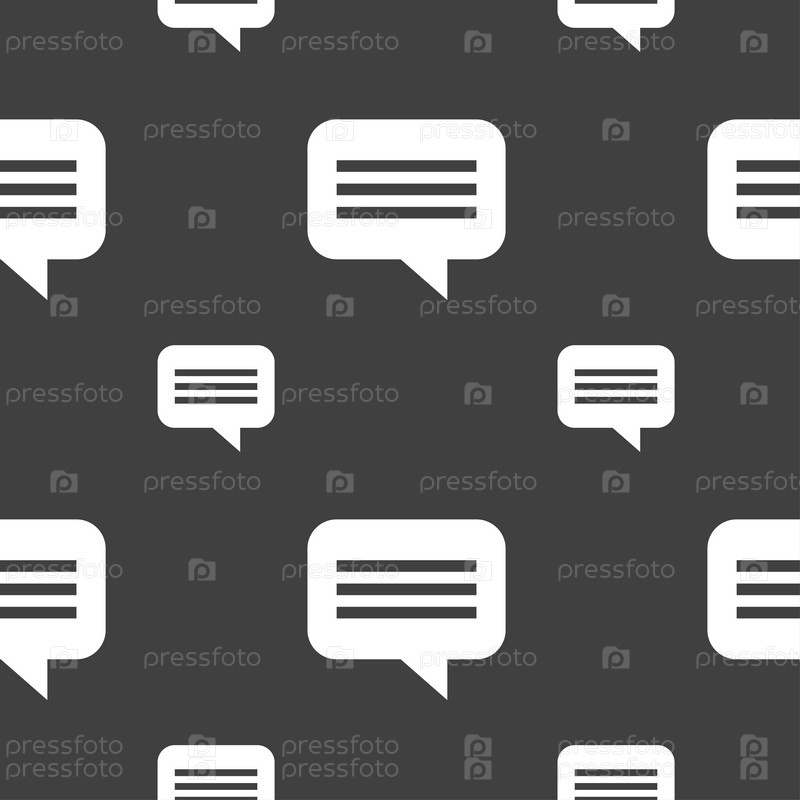 Речи пузырь, чат думаю значок знак. Бесшовный узор на сером фоне. Вектор