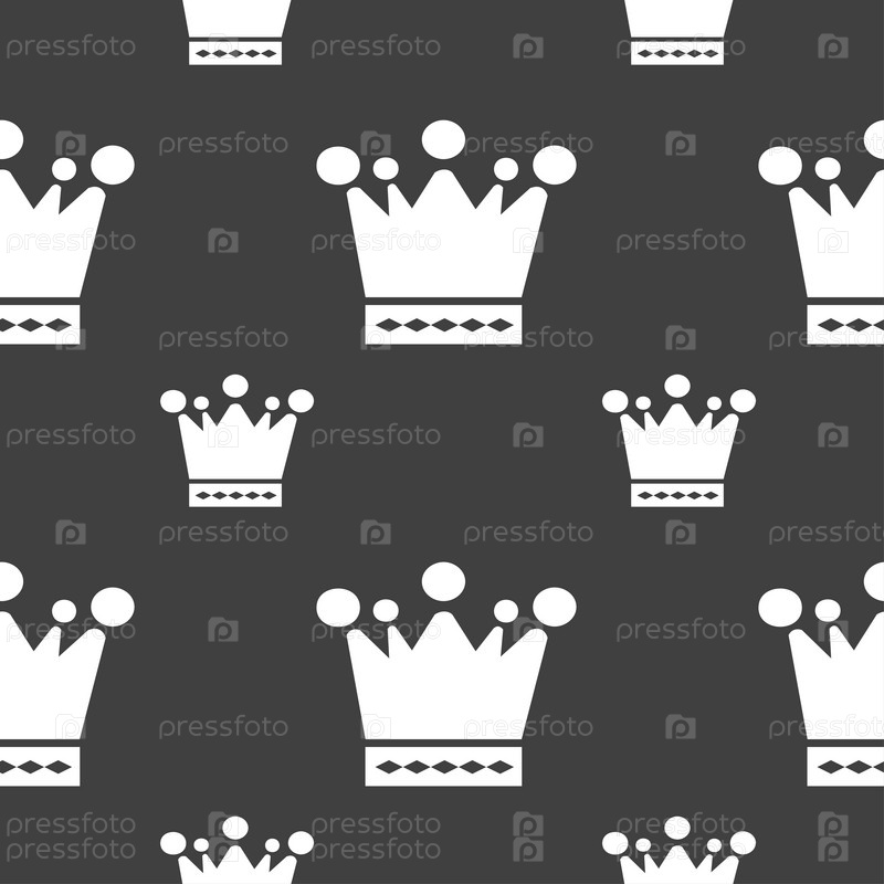 Корона значок знак. Бесшовный узор на сером фоне. Вектор