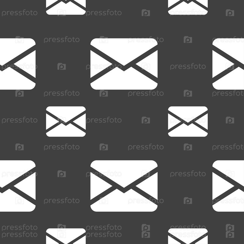 Почта, конверт, сообщения значок знак. Бесшовный узор на сером фоне. Вектор