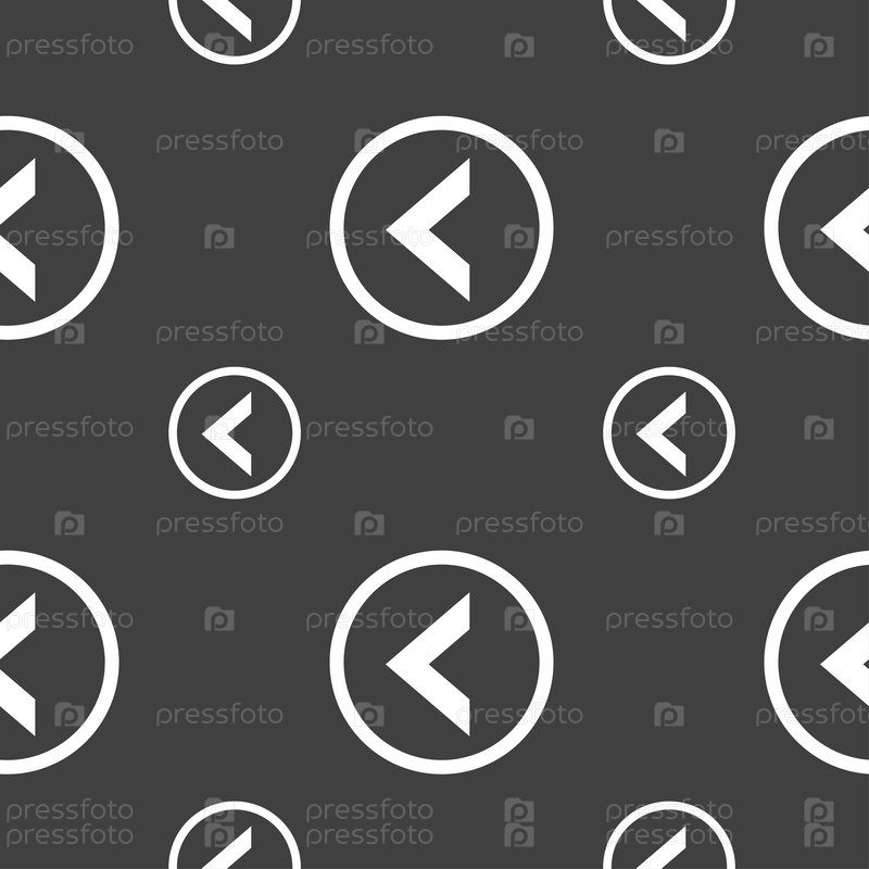 Стрелка влево, выход значок знак. Бесшовный узор на сером фоне. Вектор
