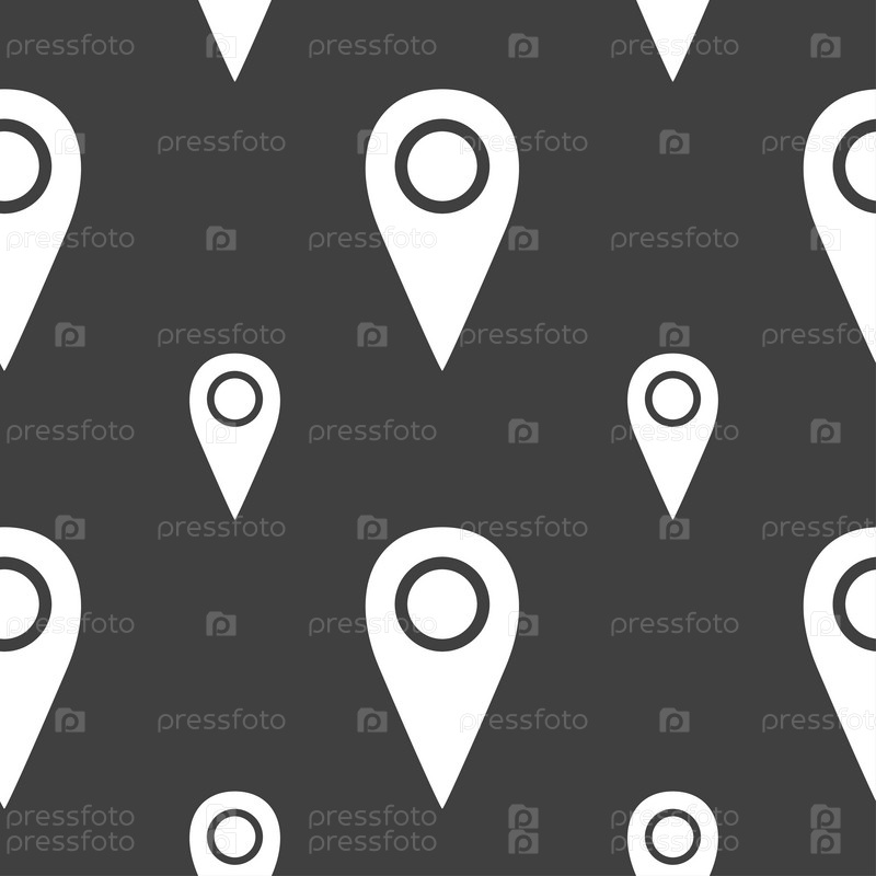 Карта знак значок указателя. Бесшовный узор на сером фоне. Вектор