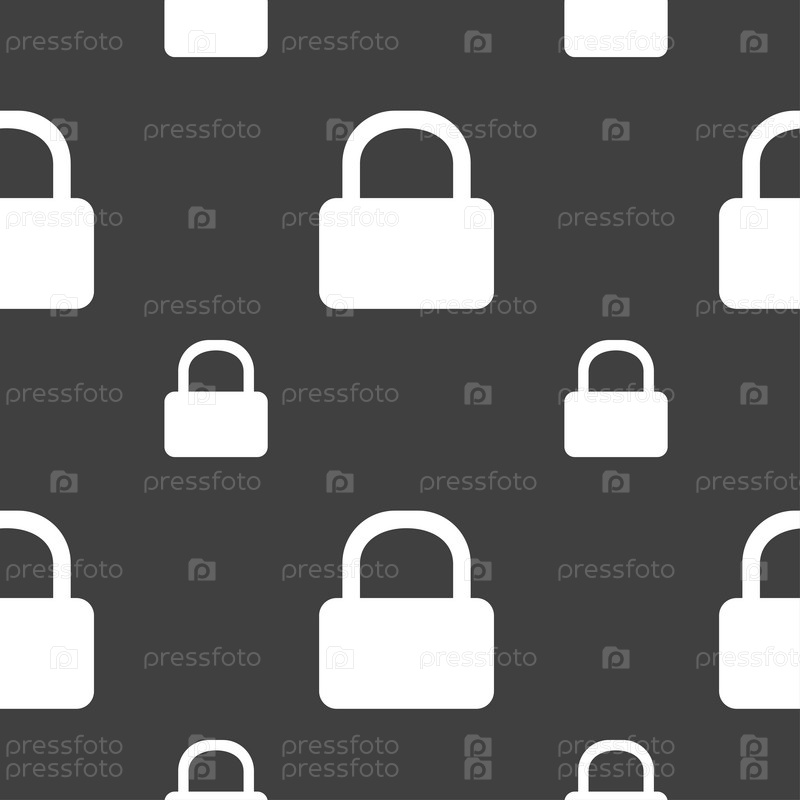 Навесной замок значок знак. Бесшовный узор на сером фоне. Вектор