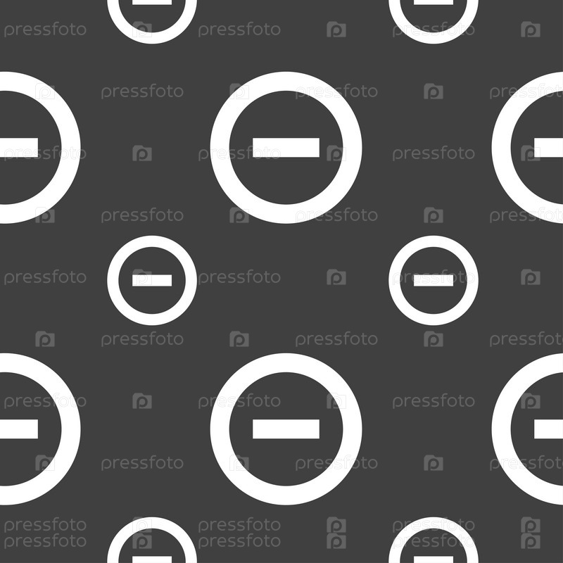Минус, негатив, зум, значок знак остановки. Бесшовный узор на сером фоне. Вектор