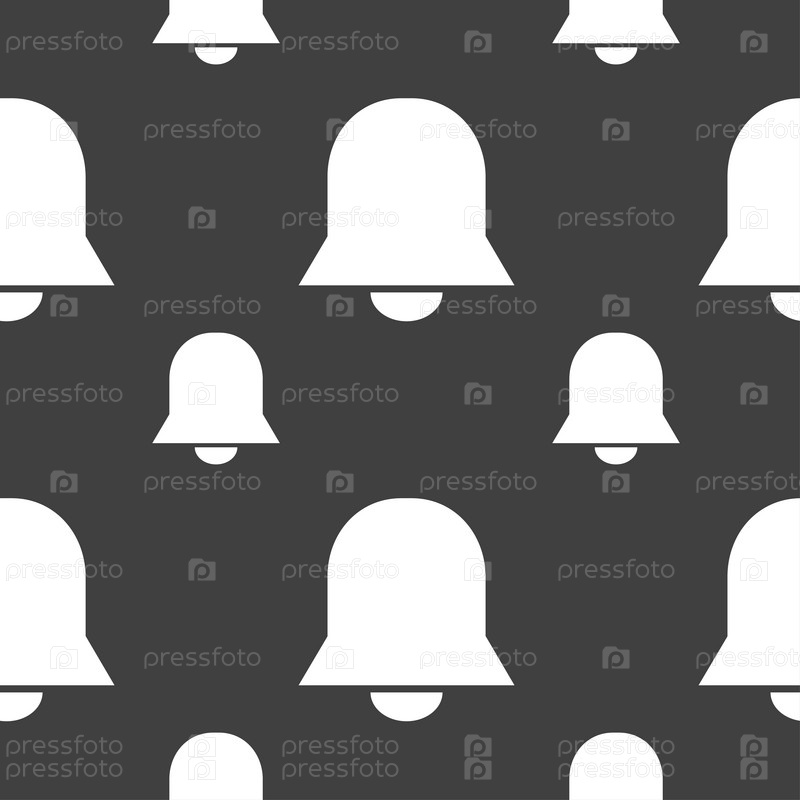 Сигнализация колокол значок знак. Бесшовный узор на сером фоне. Вектор