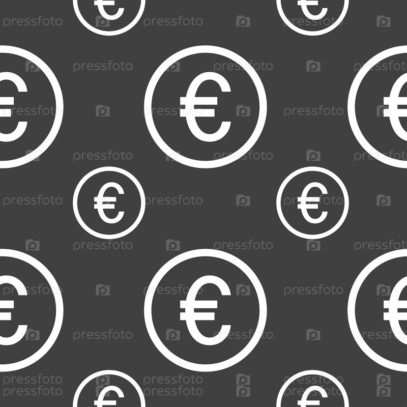 Значок знак евро. Бесшовный узор на сером фоне. Вектор
