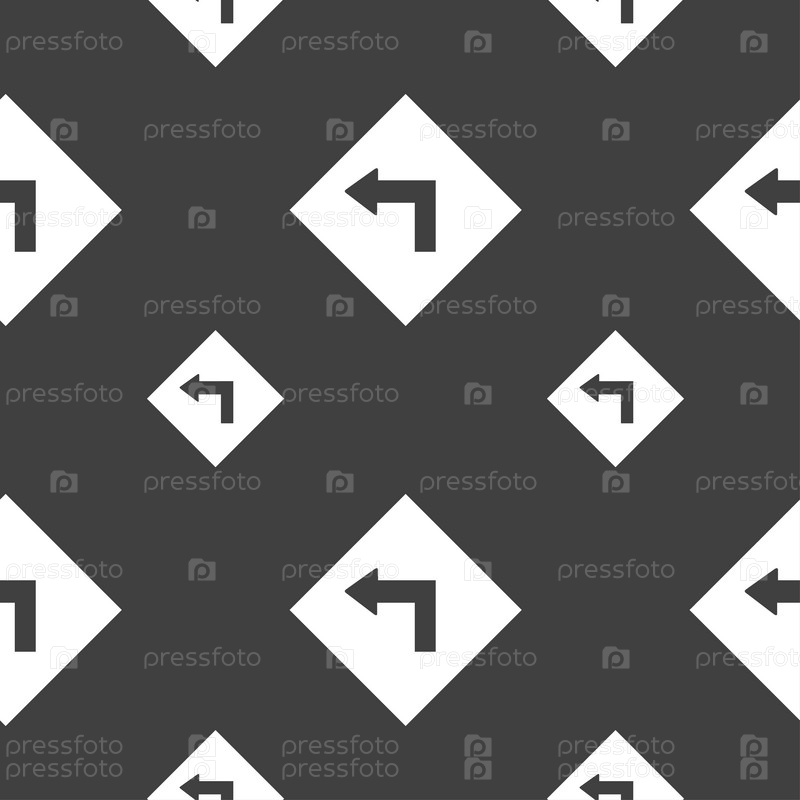 Дороги знак предупреждения опасных левой кривой значок знак. Бесшовный узор на сером фоне. Вектор