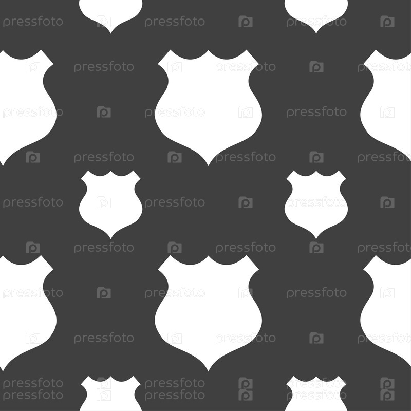 Щит значок знак. Бесшовный узор на сером фоне. Вектор