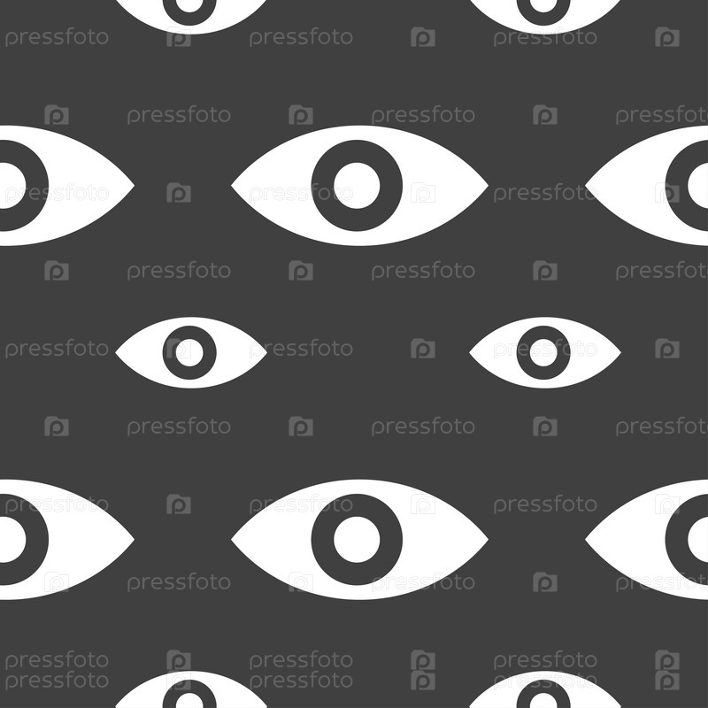 Глаз, публиковать содержание, шестое чувство, интуиция значок знак. Бесшовный узор на сером фоне. Вектор