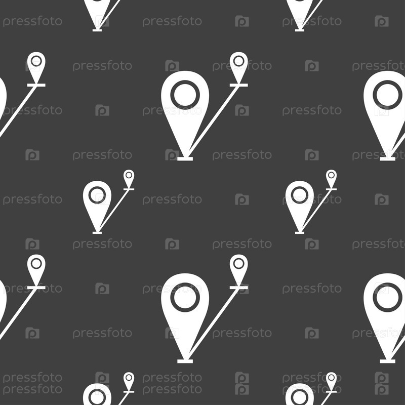 Карта знак значок указателя. Бесшовный узор на сером фоне. Вектор