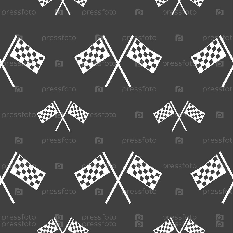 Гонка закончить флаг значок знак. Бесшовный узор на сером фоне. Вектор