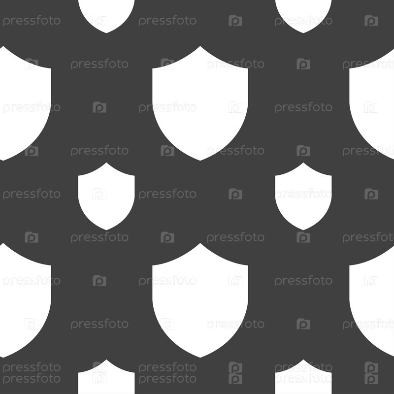 Щит, знак значок защиты. Бесшовный узор на сером фоне. Вектор