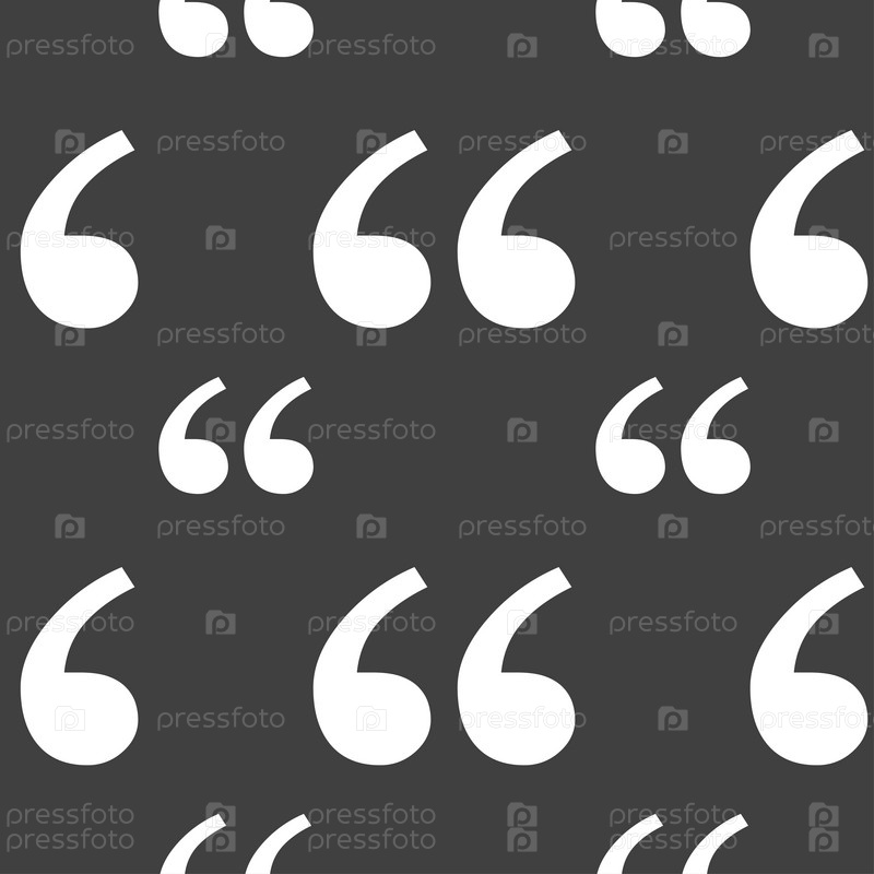 Двойные кавычки в начале слова значок знак. Бесшовный узор на сером фоне. Вектор