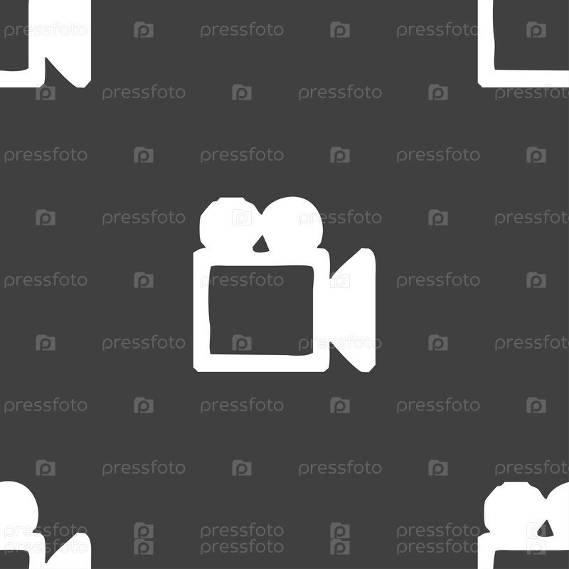 Видеокамера значок знак. Бесшовный узор на сером фоне. Вектор