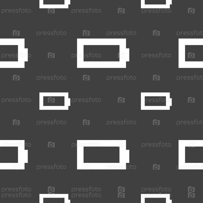 Аккумулятор пустой значок знак. Бесшовный узор на сером фоне. Вектор