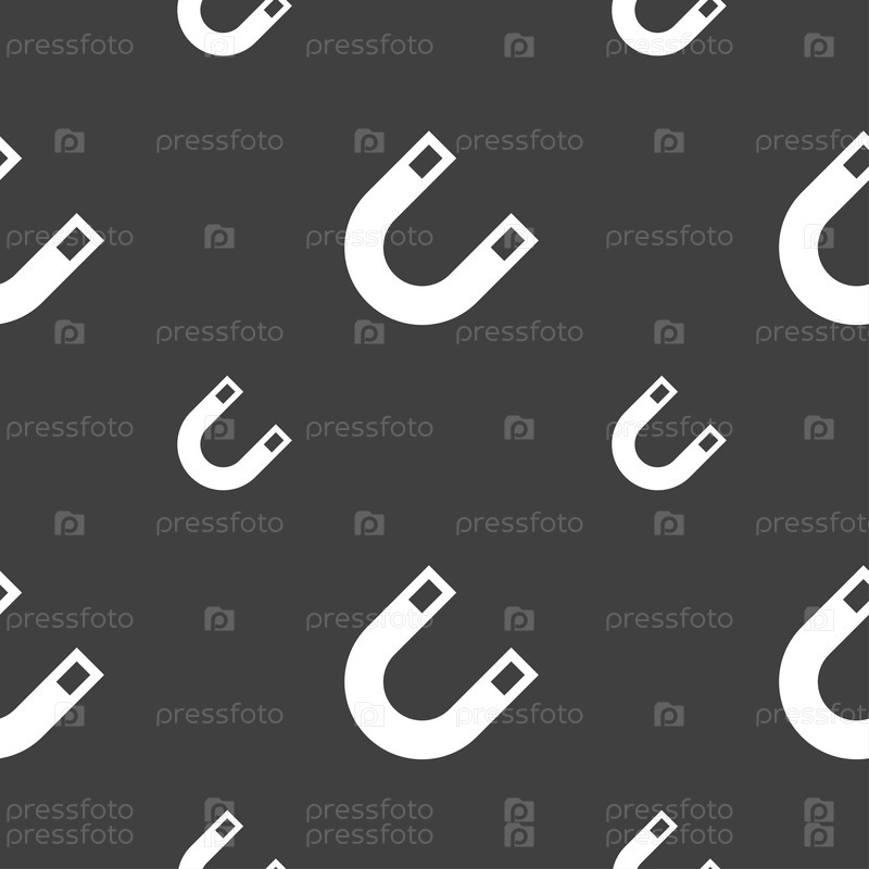 Магнит-подкова значок знак. Бесшовный узор на сером фоне. Вектор
