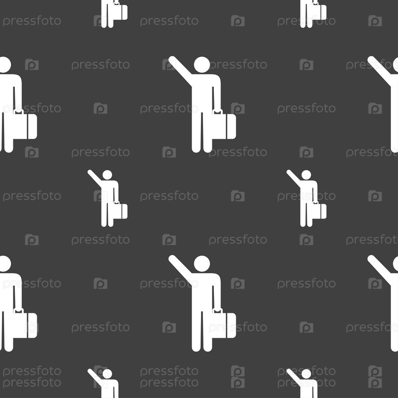 Туристический значок знак. Бесшовный узор на сером фоне. Вектор