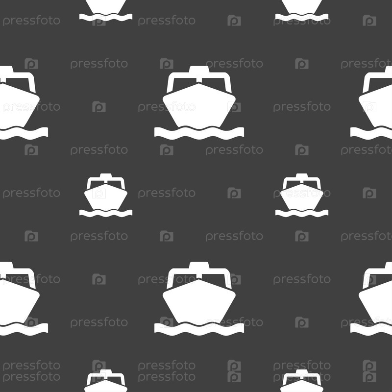 Лодка значок знак. Бесшовный узор на сером фоне. Вектор