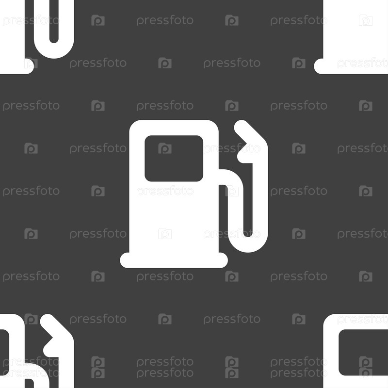 Бензин или газ станции, автомобилей топлива значок знак. Бесшовный узор на сером фоне. Вектор