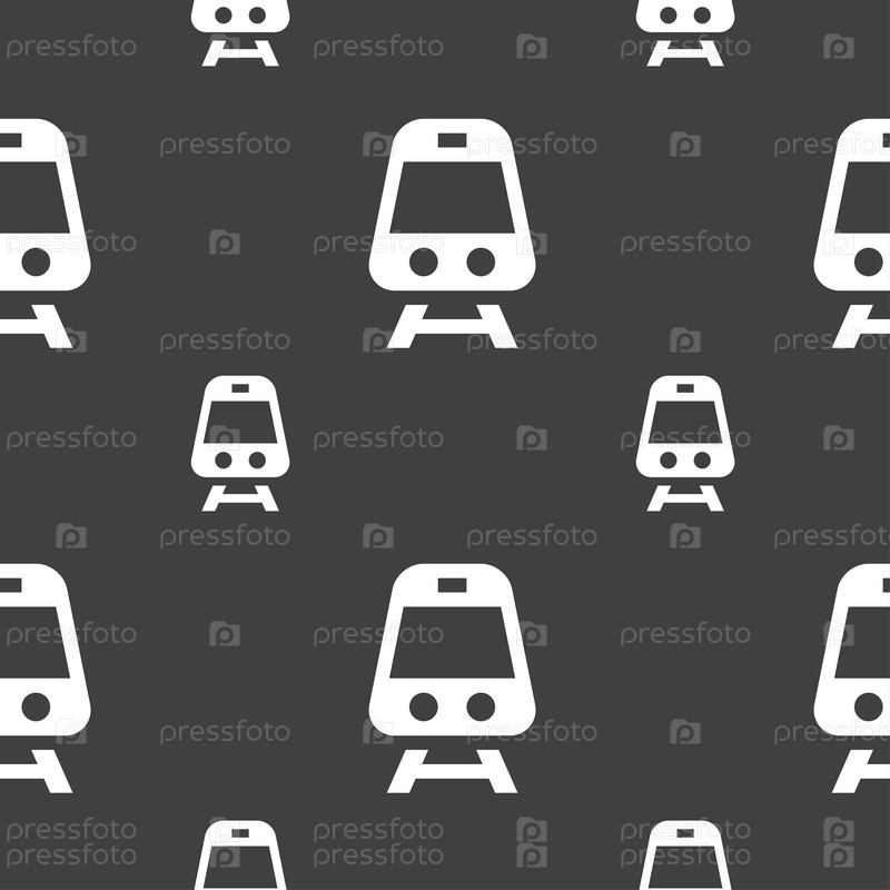 Поезд значок знак. Бесшовный узор на сером фоне. Вектор