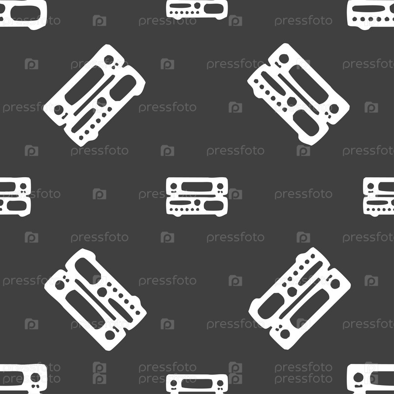 Радиоприемник, усилитель значок знак. Бесшовный узор на сером фоне. Вектор