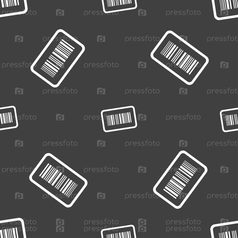 Штрих-код значок знак. Бесшовный узор на сером фоне. Вектор
