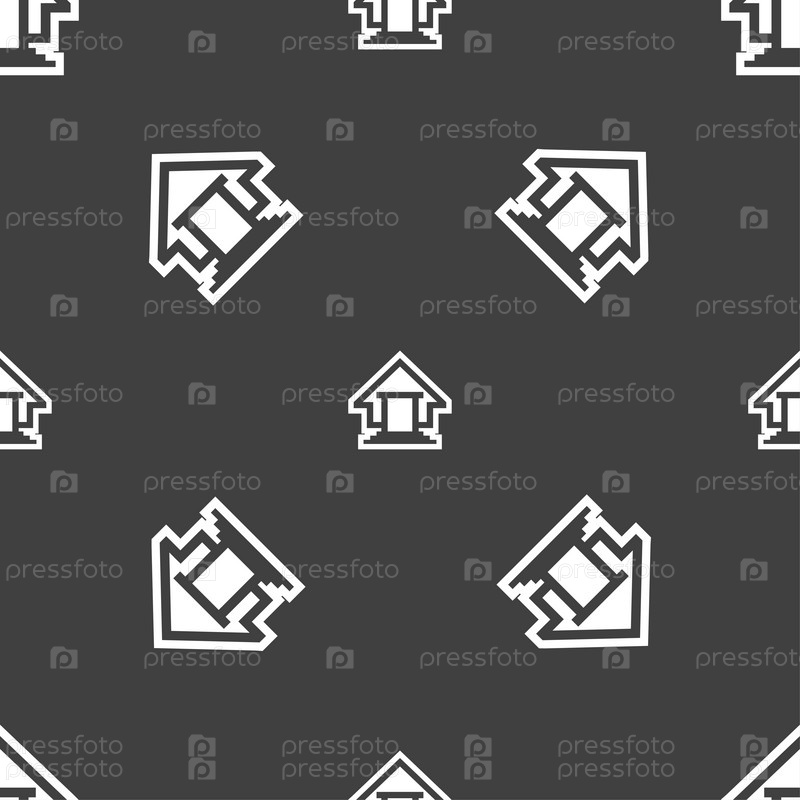 Дом значок знак. Бесшовный узор на сером фоне. Вектор