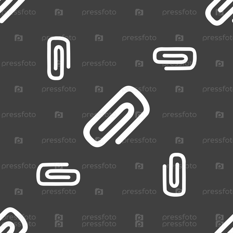 Клип на бумаге значок знак. Бесшовный узор на сером фоне. Вектор
