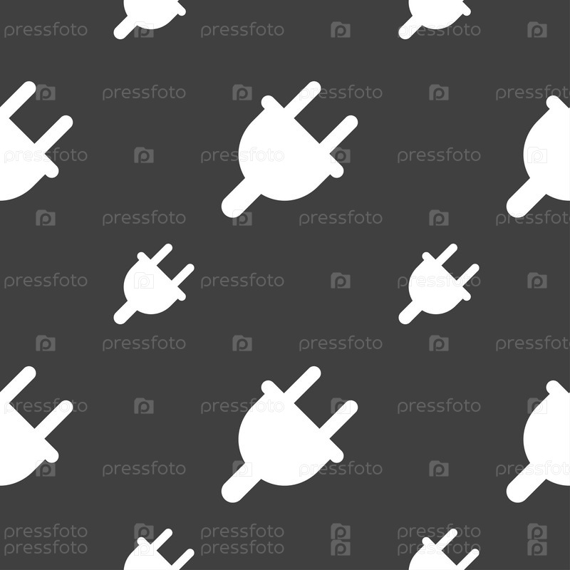 Электрическая вилка, сила энергии значок знак. Бесшовный узор на сером фоне. Вектор