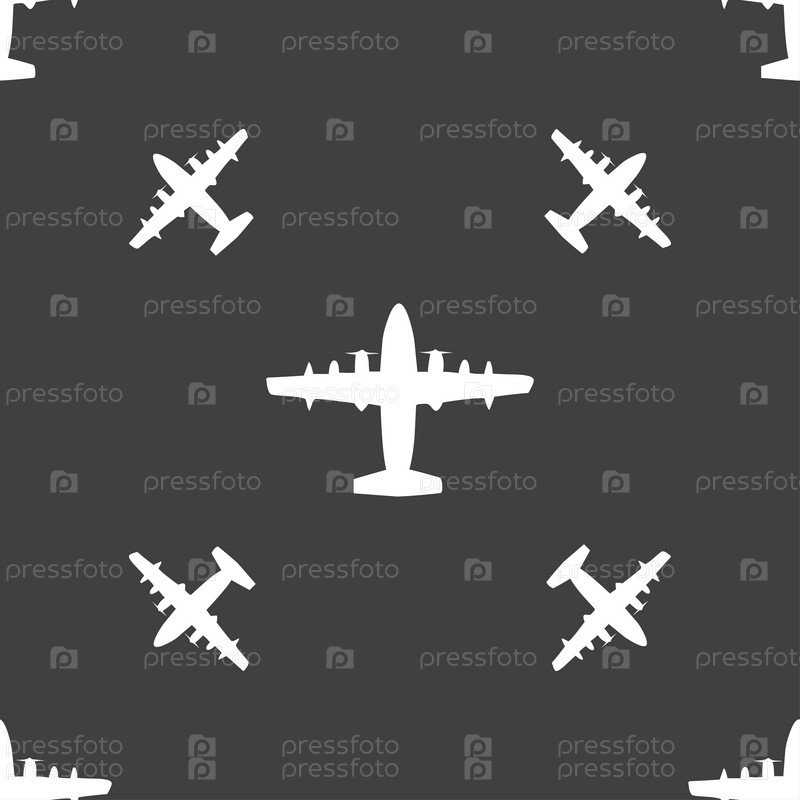 Самолет значок знак. Бесшовный узор на сером фоне. Вектор