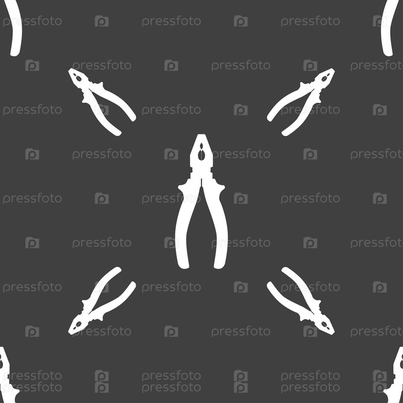 Плоскогубцы значок знак. Бесшовный узор на сером фоне. Вектор