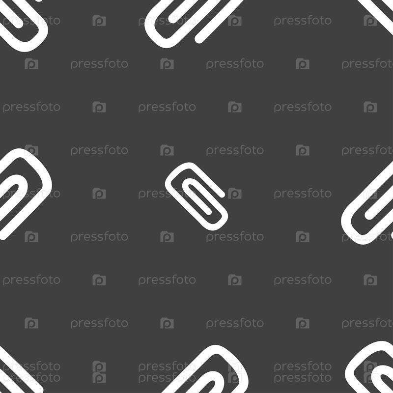 Клип на бумаге значок знак. Бесшовный узор на сером фоне. Вектор
