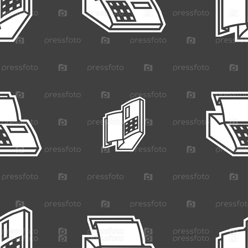 Кассовый аппарат машина значок знак. Бесшовный узор на сером фоне. Вектор