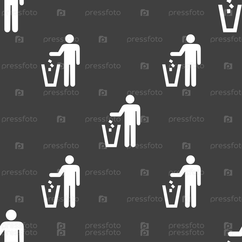 Выбросите мусор значок знак. Бесшовный узор на сером фоне. Вектор