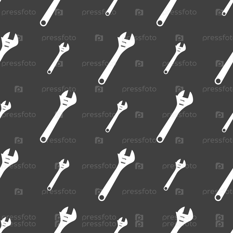 Гаечный ключ значок знак. Бесшовный узор на сером фоне. Вектор