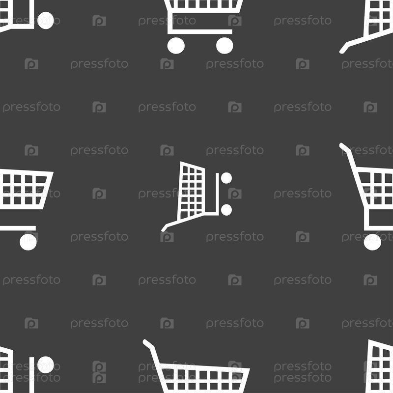 Торговый знак значок Корзина. Бесшовный узор на сером фоне. Вектор
