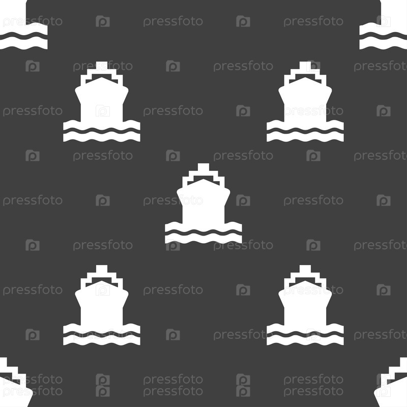 Корабль значок знак. Бесшовный узор на сером фоне. Вектор