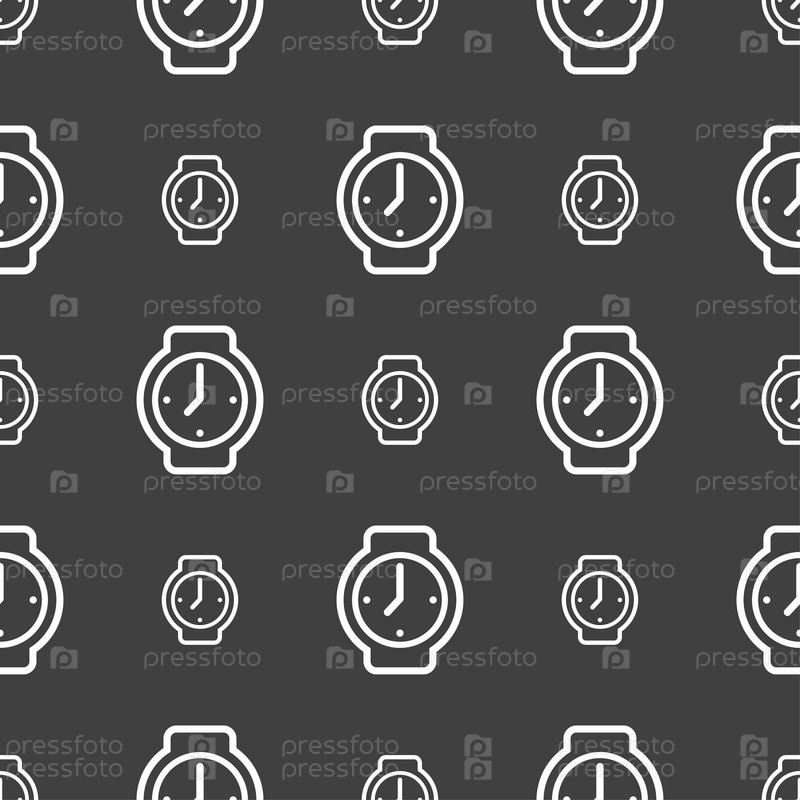 Часы значок знак. Бесшовный узор на сером фоне. Вектор
